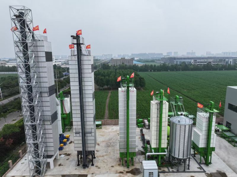糧食烘干塔的工作原理可以詳細(xì)拆解為以下幾個(gè)關(guān)鍵步驟:進(jìn)料階段:高濕度糧食(通常含水量22%-30%)通過自動(dòng)化進(jìn)料系統(tǒng)進(jìn)入烘干塔進(jìn)料系統(tǒng)通常由斗式提升機(jī)、皮帶輸送機(jī)和均布器組成提升機(jī)將糧食從地面輸送至塔頂(高度通常15-25米)均布器確保糧食均勻分布在烘干塔橫截面上熱風(fēng)生成系統(tǒng):核心設(shè)備包括燃燒機(jī)(燃油/燃?xì)?生物質(zhì))和熱風(fēng)爐燃燒機(jī)將燃料化學(xué)能轉(zhuǎn)化為熱能(溫度可達(dá)300-600℃)熱風(fēng)爐通過換熱器將高溫?zé)煔廪D(zhuǎn)化為潔凈熱風(fēng)(80-150℃)離心風(fēng)機(jī)(功率通常15-75kW)將熱風(fēng)以8-12m/s風(fēng)速送入烘干塔熱風(fēng)循環(huán)與分布:熱風(fēng)通過特殊設(shè)計(jì)的導(dǎo)流板和多孔風(fēng)道系統(tǒng)采用"順流-逆流"組合式氣流設(shè)計(jì):? 上層高溫區(qū)(100-120℃)順流烘干? 中層中溫區(qū)(80-100℃)橫流烘干? 下層低溫區(qū)(60-80℃)逆流烘干風(fēng)速控制系統(tǒng)確保每立方米糧食獲得均勻的風(fēng)量(通常300-500m3/h·t)熱交換過程:熱風(fēng)通過三種方式傳遞熱量:a) 傳導(dǎo):糧食顆粒與熱風(fēng)直接接觸傳熱b) 對(duì)流:熱風(fēng)穿透糧層帶走水分c) 輻射:高溫壁面輻射傳熱典型熱交換效率可達(dá)65-85%水分蒸發(fā)速率:每小時(shí)降低1.5-3%含水量濕度控制系統(tǒng):排濕風(fēng)機(jī)(風(fēng)量2000-10000m3/h)持續(xù)排出濕空氣自動(dòng)調(diào)節(jié)閥根據(jù)濕度傳感器(精度±2%RH)控制排濕量廢氣溫度通常45-55℃,相對(duì)濕度80-95%部分系統(tǒng)配備熱回收裝置,可回收20-30%余熱分段烘干工藝:預(yù)熱段(60-80℃):糧食溫度均勻上升快速干燥段(100-120℃):大量水分蒸發(fā)緩速干燥段(80-90℃):內(nèi)部水分向外遷移冷卻段(環(huán)境溫度+10℃):避免熱糧結(jié)露每段停留時(shí)間根據(jù)糧食品種調(diào)整(小麥30-50分鐘,水稻40-60分鐘)出料系統(tǒng):旋轉(zhuǎn)卸料閥(轉(zhuǎn)速2-8rpm)控制出料速度在線水分檢測儀(精度±0.5%)實(shí)時(shí)監(jiān)控含水量典型處理能力:連續(xù)式烘干塔每小時(shí)10-100噸能耗指標(biāo):烘干1噸糧食消耗25-45kg標(biāo)煤當(dāng)量整個(gè)系統(tǒng)由PLC自動(dòng)控制,可精確調(diào)節(jié)溫度(±2℃)、風(fēng)速(±0.5m/s)和停留時(shí)間(±1分鐘),確保糧食烘干均勻性(水分偏差≤0.8%),同時(shí)保持糧食品質(zhì)(爆腰率≤3%,發(fā)芽率≥95%)。
